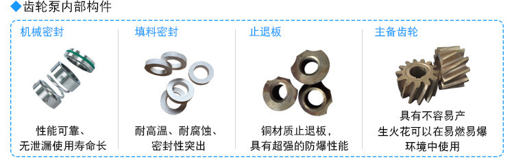 齿轮泵主要用以输送各种机器装置的润滑系统中的润滑油,适用于输送粘度为5×10-6〜1.5×10-3m2/s(5-1500cst)的润滑油。小于300℃的润滑油。不锈钢齿轮泵可输送非润滑油,饮品和低腐蚀性液体。配备铜齿轮可输送低内点液体,例如汽油,苯等。电机,该系列泵还可以根据用户需配备相同标准的防爆电机。材料:304.316.316l不锈钢